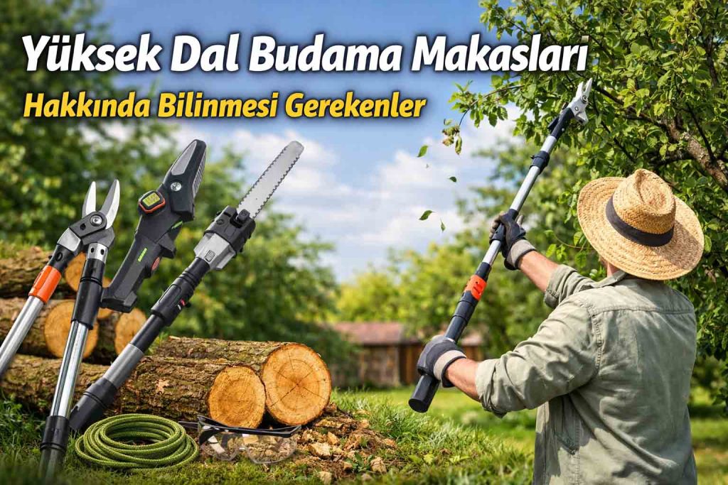 Uzun saplı veya teleskopik yapıya sahip, yüksek dallara ulaşmak için tasarlanmış özel budama